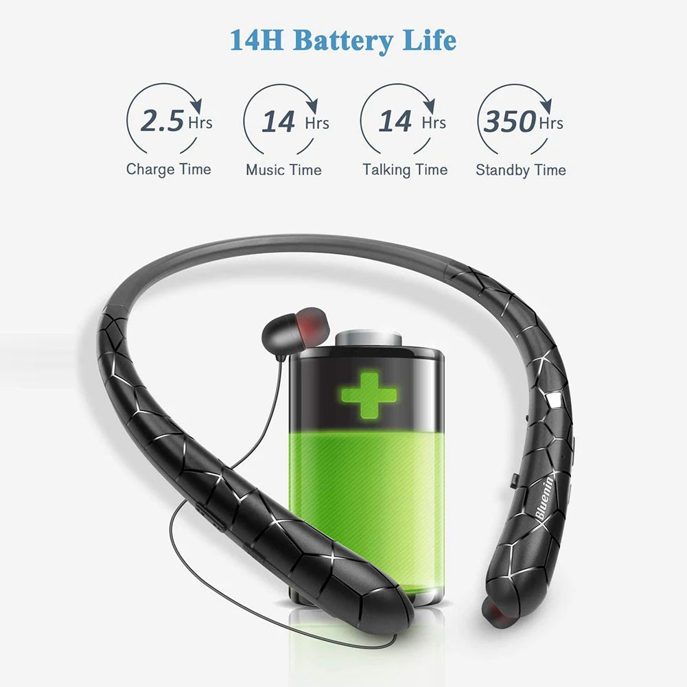 Neckband Headset Waterproof Running Headset Bluetooth-Compatible5.0 Noise Canceling Retractable Earbuds for Office Sports