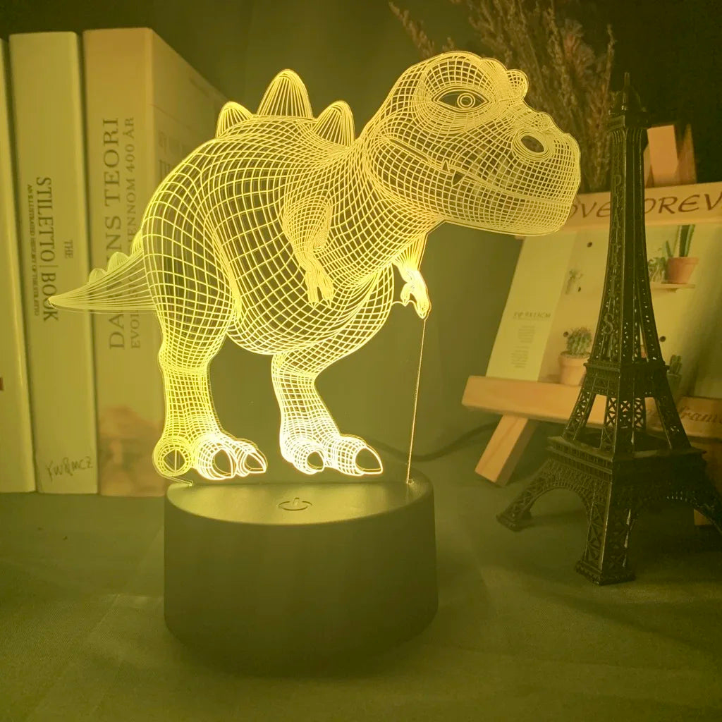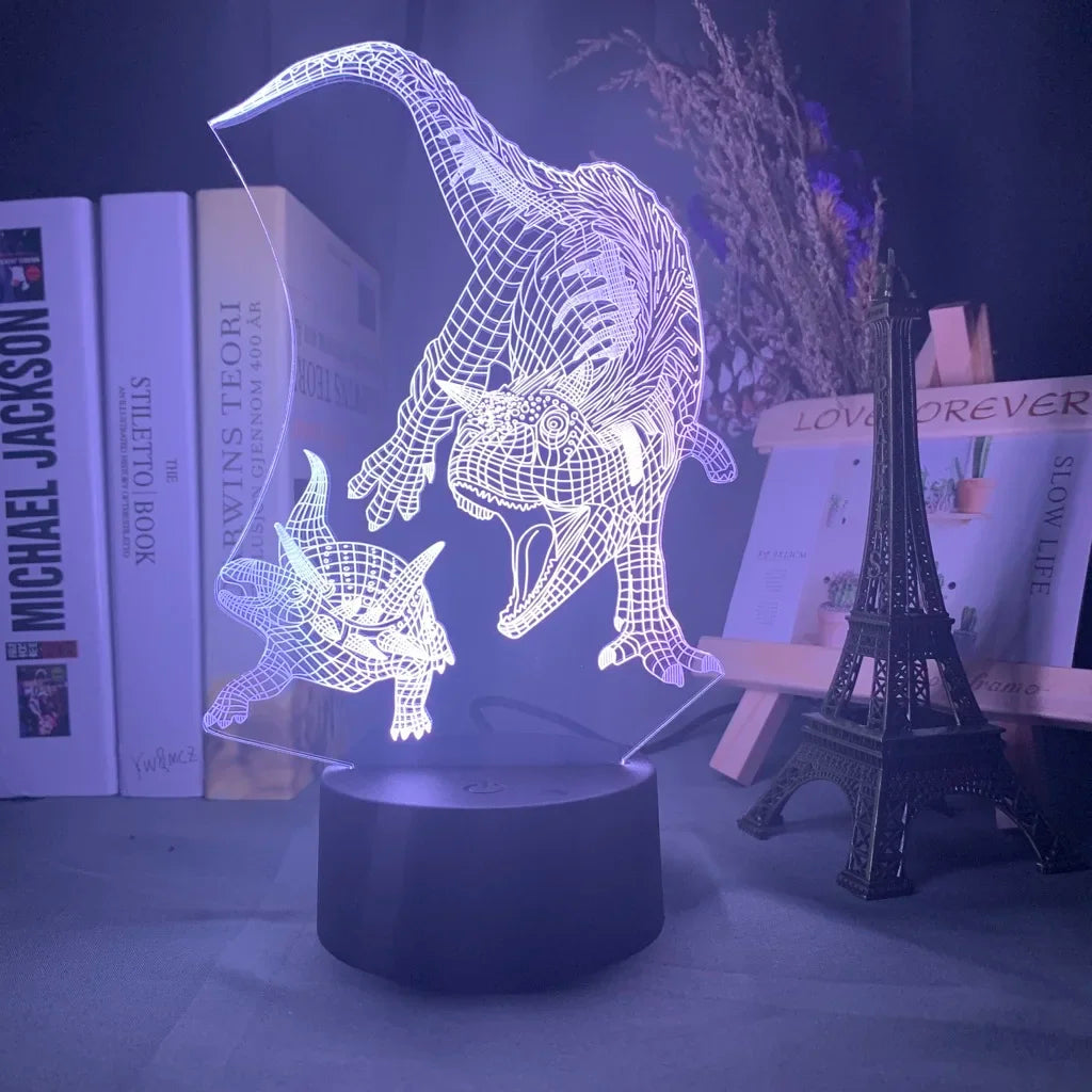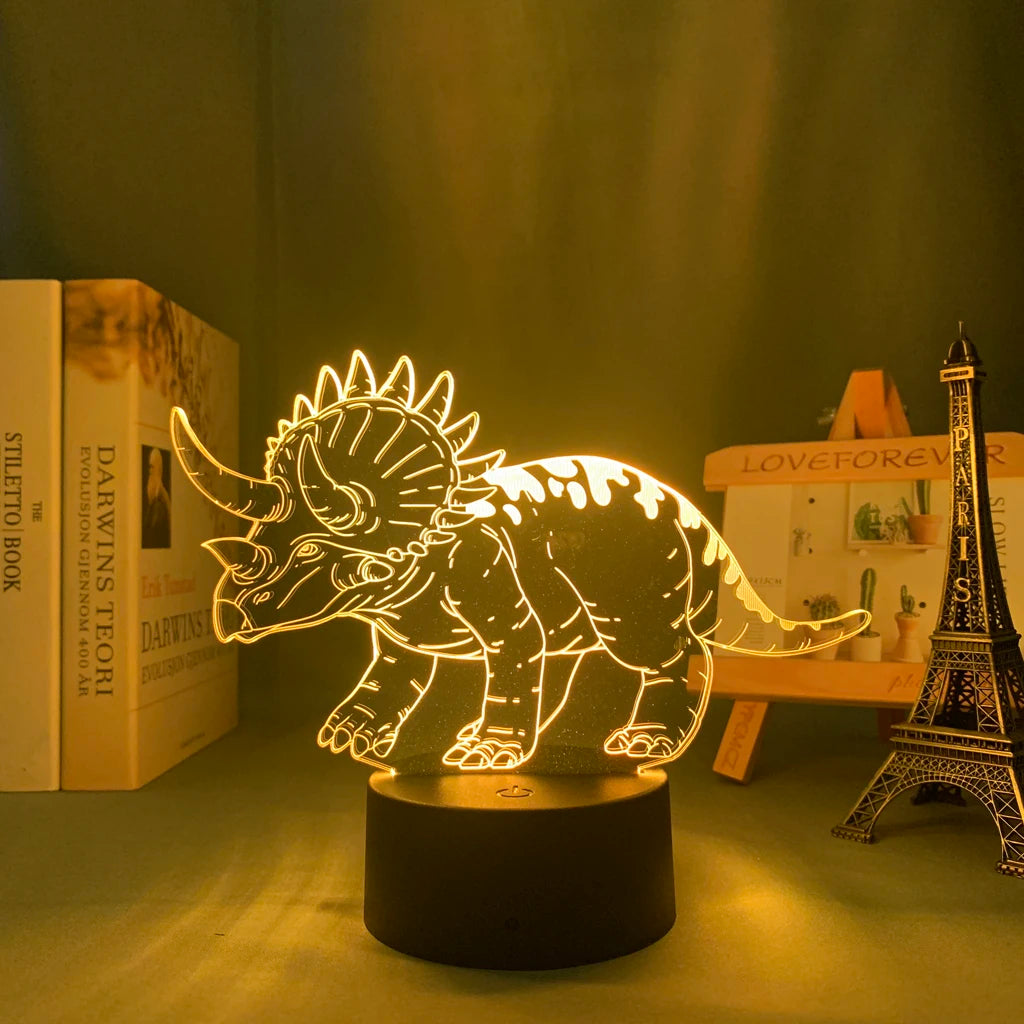 Baby Night Light Dinosaur Triceratops for Kids Bedroom Decor Nightlight Cool Birthday Gift 3d Illusion Acrylic Battery Desk Lamp