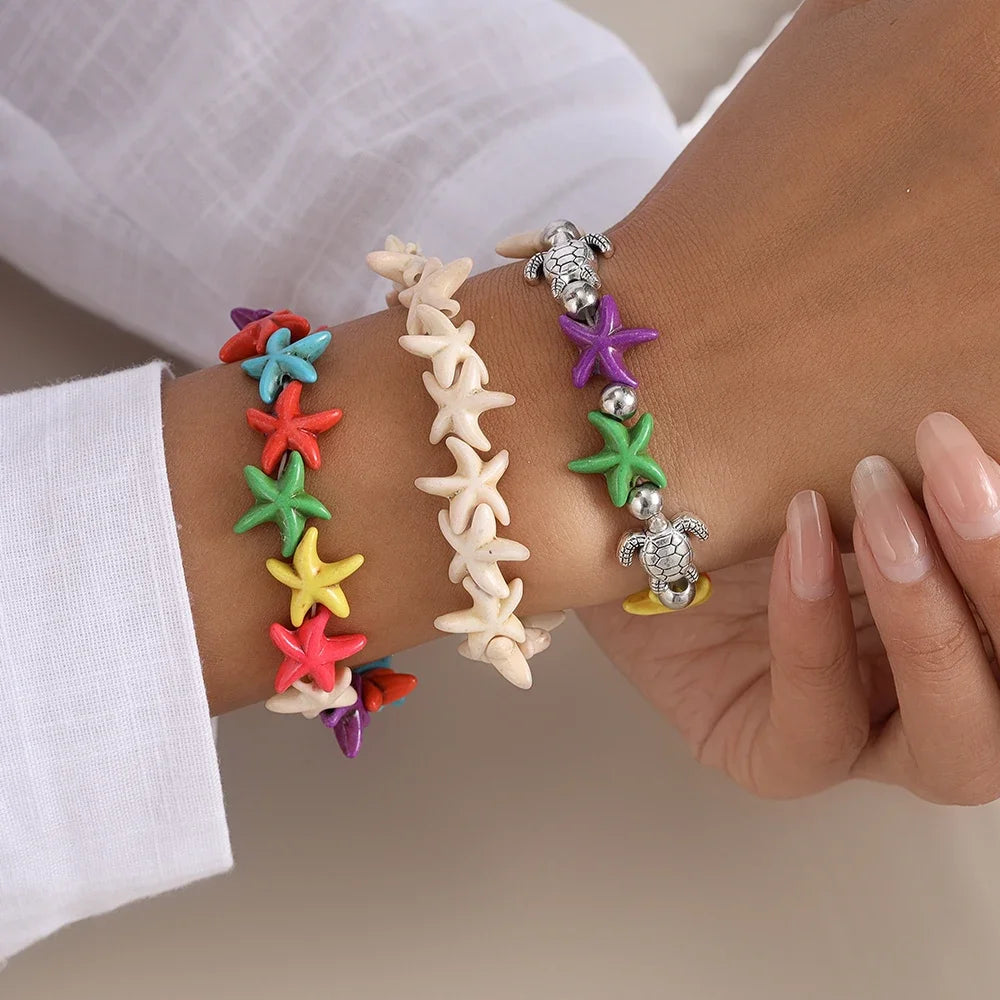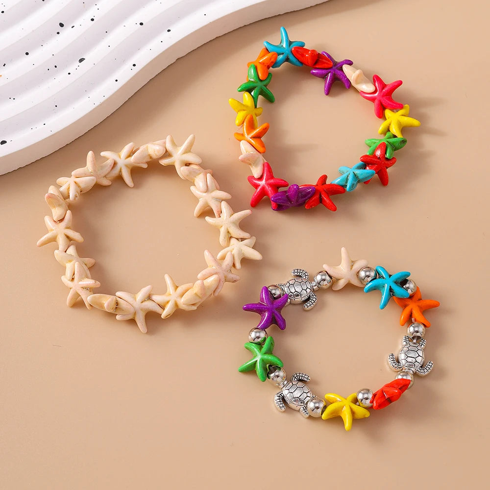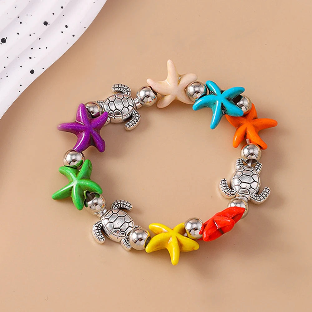 Bohemia Colorful Starfish Bracelets for Women Girls Turtle Beaded Bracelets Summer Beach Jewelry Gifts
