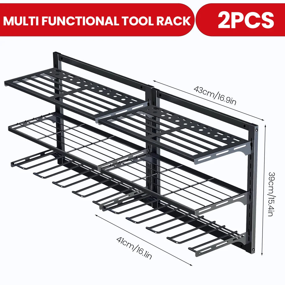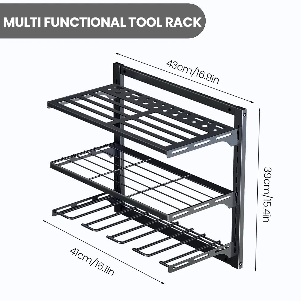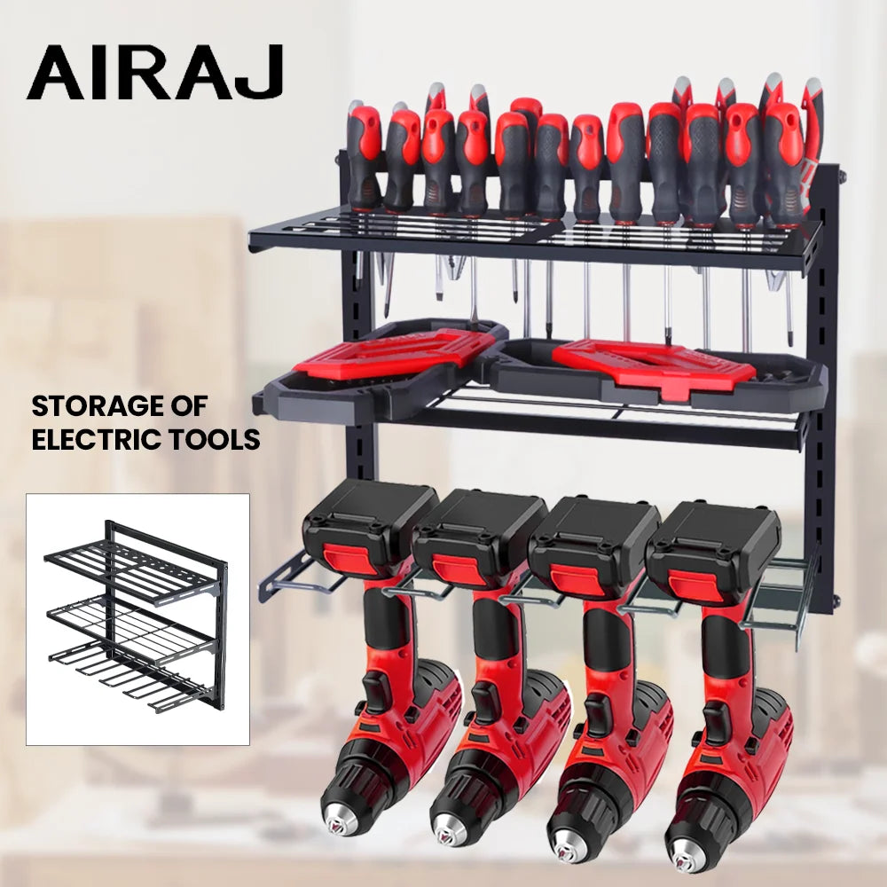 AIRAJ Wall-Mounted 3-Tier Storage Rack For Electric Tools Adjustable Heavy-Duty Garage Tool Organizer With Cordless Drill Holder