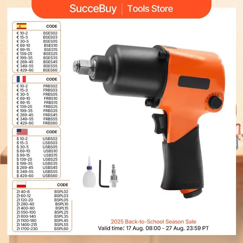 SucceBuy Air Impact Wrench 1/2"Square Drive Air Impact Gun Up to 880ft-lbs Nut-busting Torque 7500RPM Lightweight Pneumatic Tool