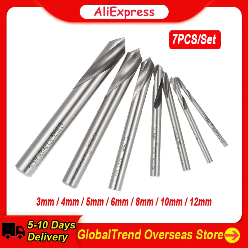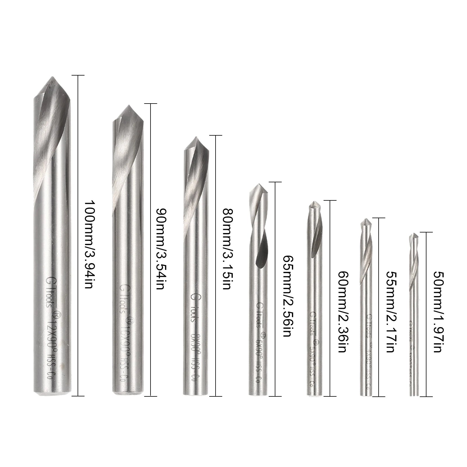 7PCS M42 HSS Drill Bits High Speed Steel Cobalt Spotting Drill Bits Set Round Shank 90 Degree Drilling Chamfering Tool 3mm-12mm