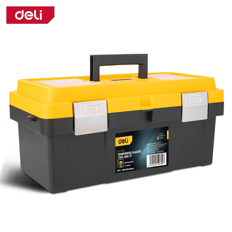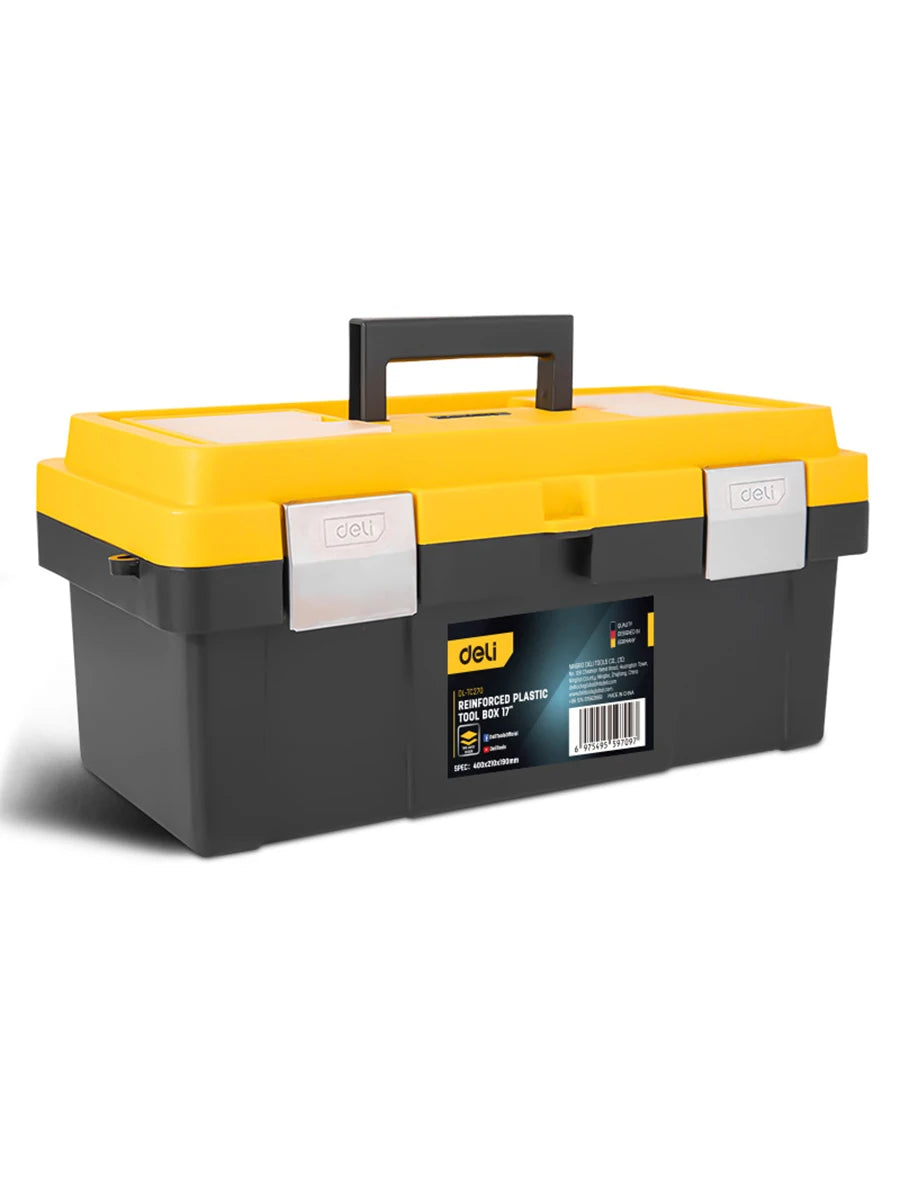 Deli 17in Plastic Tool Box, Storage Organizer with Secure Latch, Portable Design, Perfect for Home, Garage, and DIY Projects
